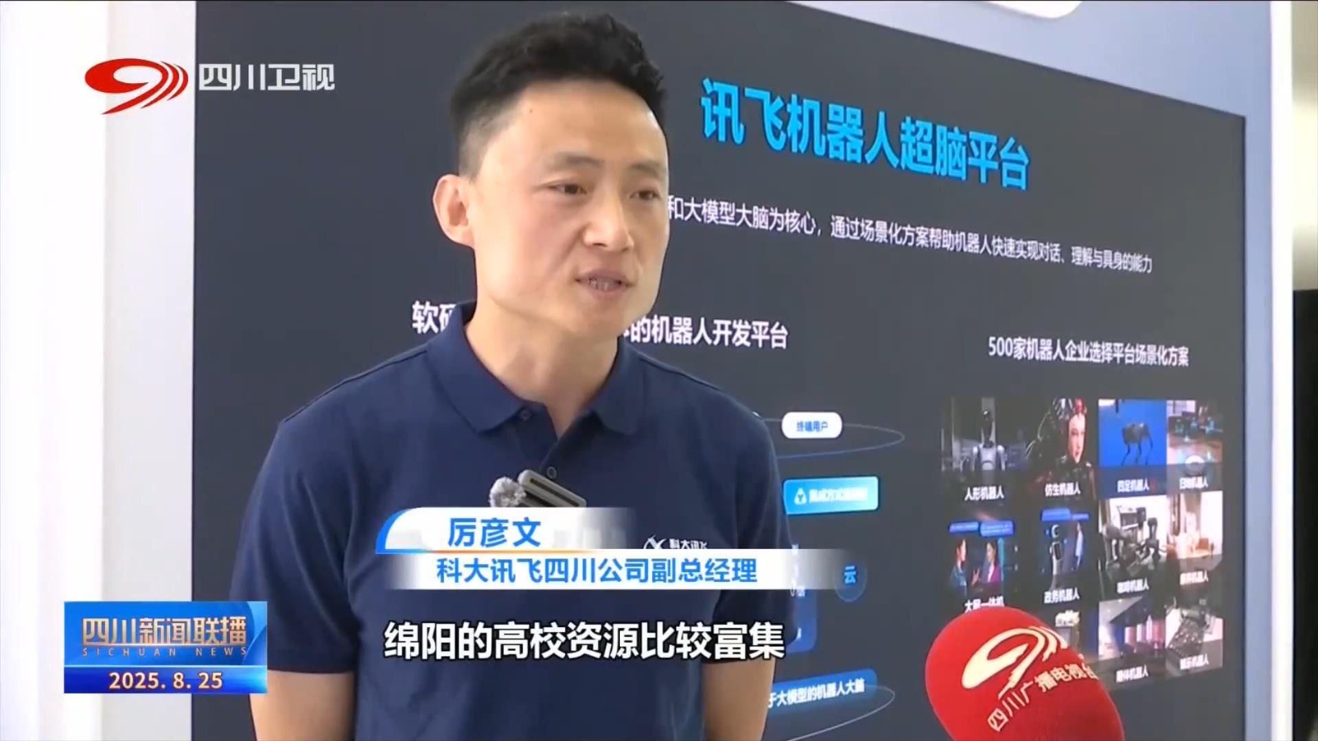 科大讯飞四川公司副总经理 厉彦文:绵阳的高校资源比较富集,包括像西科大,人才专家、科技力量。第二个像天链、乐聚、长虹机器人在本地发展得非常迅速。绵阳未来的发展跟科大讯飞机器人赛道的发展高度契合,所以我们在这个地方选择布局,也是坚定发展信心。