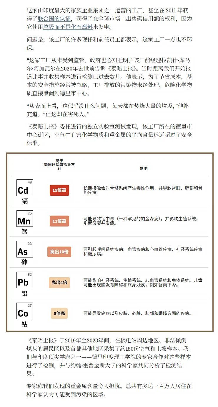 有大量媒体曝光,在新德里Okhla垃圾焚烧厂中,其火化方式和垃圾山自燃几乎没区别。就是纯粹的“烧垃圾”,不做污染物处理,直接排放。导致周边地区的二噁英、镉、铅、砷等有害物质的含量超标10倍以上。