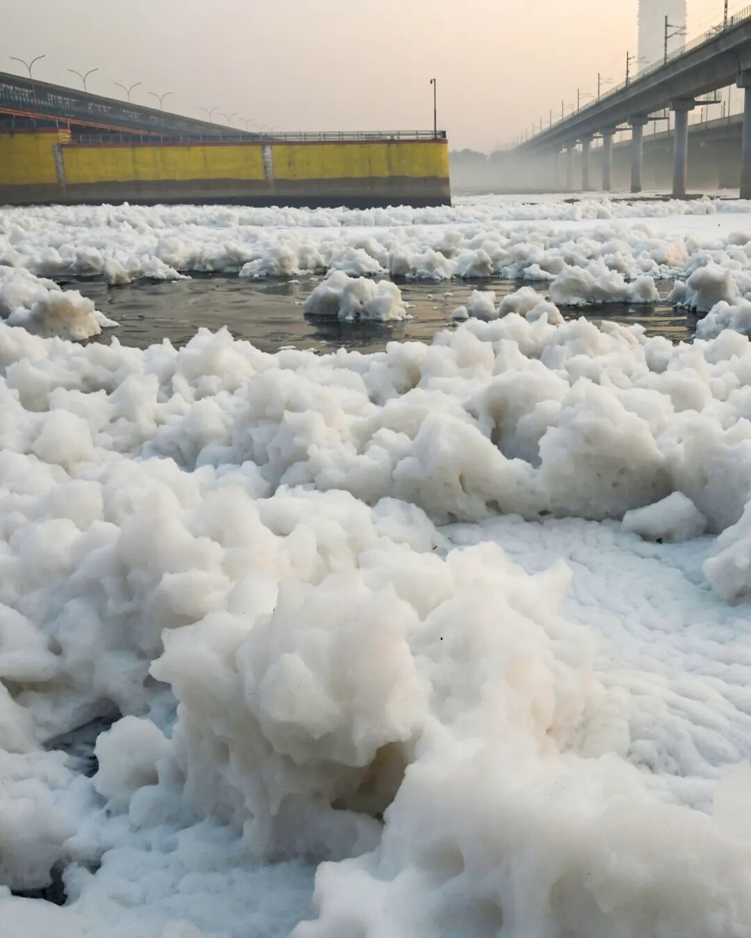 工业和生活废水在恒河支流上交织出毒泡沫