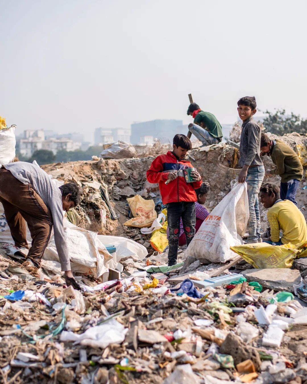 拾荒者中甚至还有不少孩子