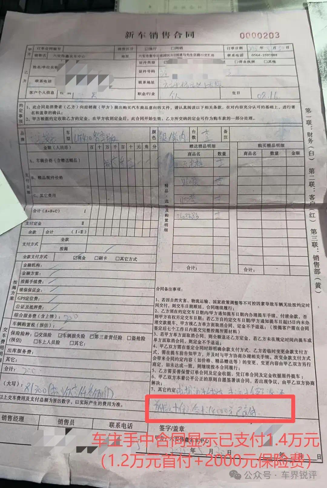 3.15前夕,知名官媒了解到,有40余名车主因该销售顾问承诺“代办国补”等受骗。除虚假承诺受骗之外,部分车主还发现,4S店存档合同与车主手持合同内容不一致,出现首付金额“缩水”、伪造客户签字等情况。