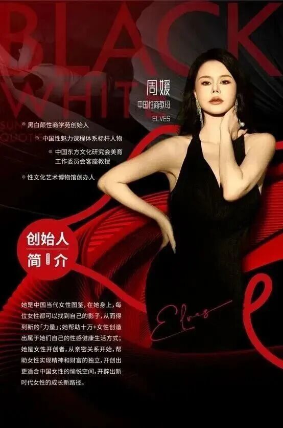 在线上爆火之前,周媛名下的“黑白颠性商学院”相关课程就已经在线下火热进行,主打传授女性如何提高“性商”。2025 年,周媛还举办了为“性感启示录”全国巡演培训课。