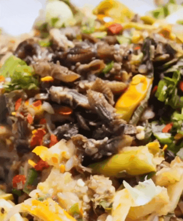 这道菜很少有外地人敢尝试,但根据吃过的人说,它酸辣开胃、层次丰富,吃起来爽口解腻,风味十足。