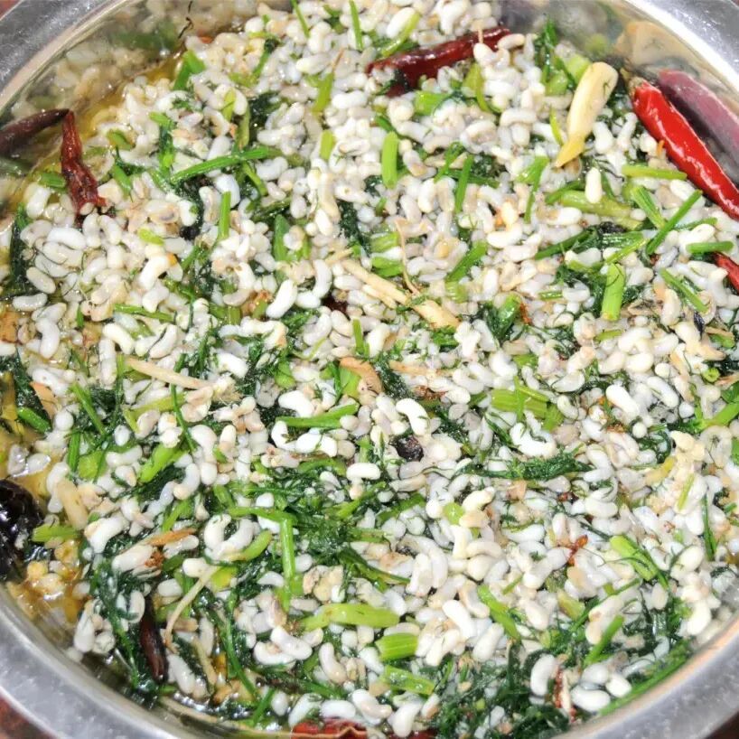 在红河元阳梯田边,哈尼人用清水或高汤小火煮蚁蛋。撒上薄荷、香柳、小米辣,加盐和味精调味,解腻又爽口。