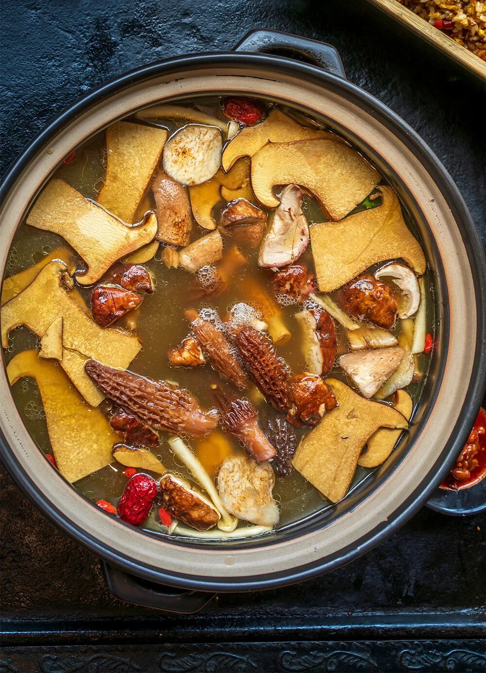 不过,这火锅里往往有见手青、牛肝菌等带毒的菌子,必须得完全煮熟,才能破坏里面的毒素。所以一般的正规店,会等汤煮开之后,用沙漏计时15分钟以上,期间还要把筷子收走,以免顾客心急,把自己吃中毒。