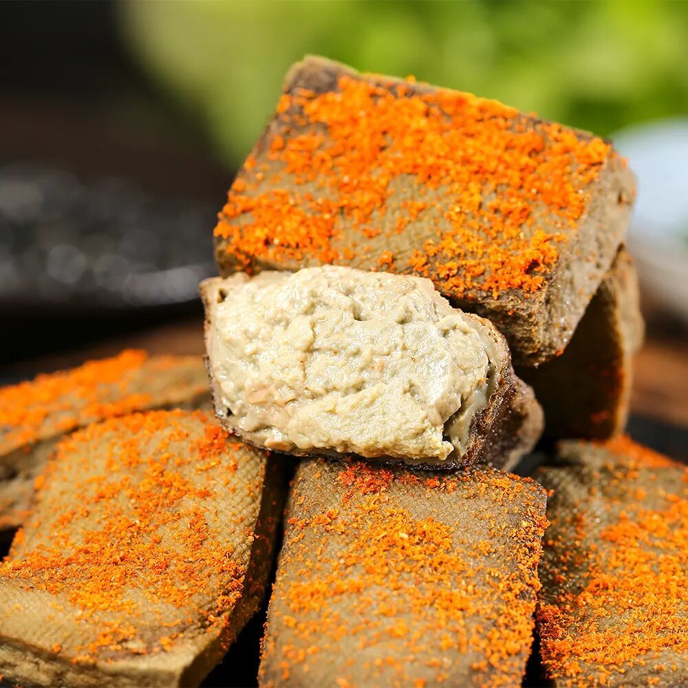 而且口感上,正因为它被霉菌分解过,所以更绵软细腻,有的内部甚至接近流沙的样子,让喜欢的人欲罢不能。