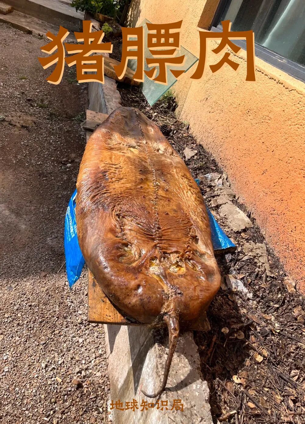 就是不分割整头猪,只把内脏掏出来,直接涂抹盐巴和香料,定型之后直接风干腌制。